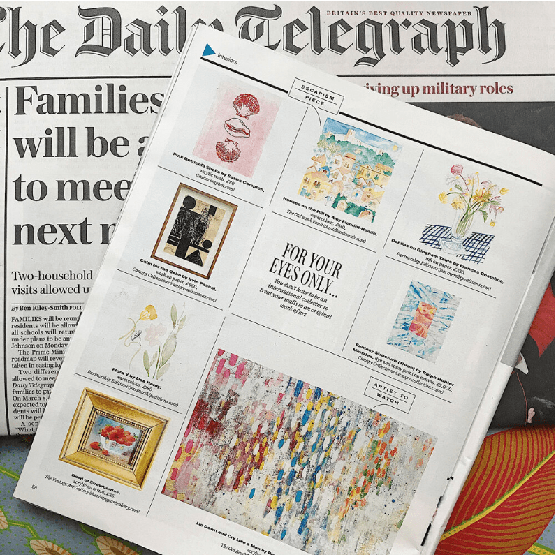 I am delighted to have had my ‘Houses on the Hill’ painting highlighted as the escapism piece in The Telegraph Magazine’s edit of original art for your home. Read the full article online here.